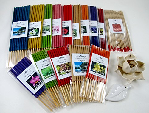 Fulllight aroma set, Thai tradition temple incense, 9 packs of 10 smokeless aroma incense tube, 5 packs of 10 small size fragrance incense tube & 2 handmade ceramic Incense burner (FL47)