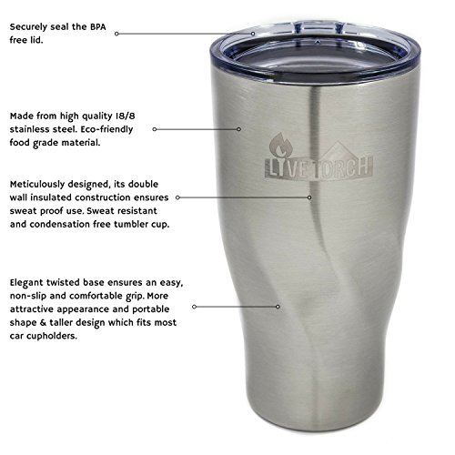 PROTECT ALL SURFACES: Meticulously designed, its double wall insulated construction ensures sweat proof use. Eliminate the need of coasters and protect your precious coffee table or office desk. Say goodbye to water rings and lingering flavors once and for all with a LIVE TORCH indestructible stainless steel tumbler.