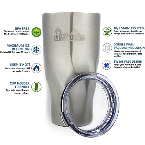 LIVE TORCH Tumbler With Lid 30 Oz | Stainless Steel Vacuum Insulated Double Wall Thermos Cup for Hot Beverages and Cold Drinks Mug