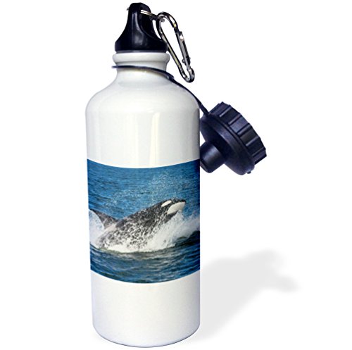 3dRose Orca Whale Breaching. Sports Water Bottle, 21 oz, White