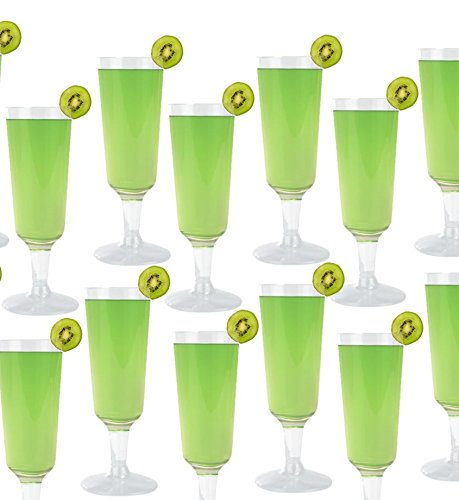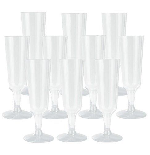 Product Description CHAMPAGNE FLUTES! PACK INCLUDES: 16 durable and sturdy clear plastic champagne flutes. ADD SOME STYLE AND CLASS! Use these plastic champagne flutes to add style and class to your parties and events without having the risk of broken glass. MEASUREMENTS: These disposable glass flutes have a 5.5 oz capacity, 6.25 inch height, and a 2.25 inch diameter. ELEGANT STEMWARE! These elegant and classic champagne flutes are great for Wines, champagnes, cocktail drinks, smoothies, and just any beverage that your heart desires. Simple and easy assembly required, simply attach base to the cup. IDEAL FOR: This pack of disposable champagne glasses are perfect for: - Parties - Weddings - Holidays - Anniversaries - Caterings - Food service - Bars - Cocktail parties - Dinners - Gatherings and much more. 100% MONEY BACK GUARANTEE! If you are not completely satisfied with your purchase we will issue a full refund for your satisfaction! CLICK "ADD TO CART" NOW!! 0