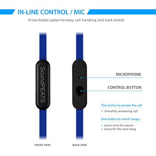 Title : SoundPEATS Earbud Headphones In-Ear Noise Cancelling Earphones Stereo Headphones with Mic (Metal Housing, Flat Cable, In-line Control, iPhone and Android Compatible) - M20 Blue
