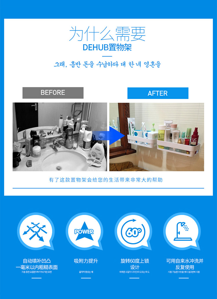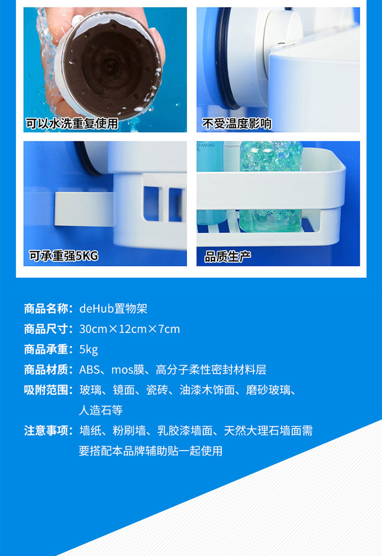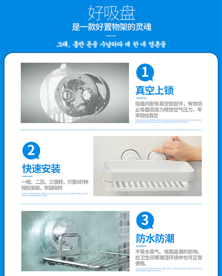 吸壁式卫生间置物架免打孔浴室吸盘式收纳架洗手间洗漱台壁挂