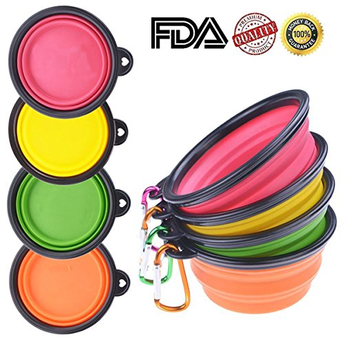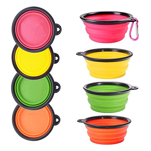 4LoveDogs 4-Pack Collapsible Silicone Dog Bowl,Food Grade BPA Free Portable Travel Pet Bowl Wit...