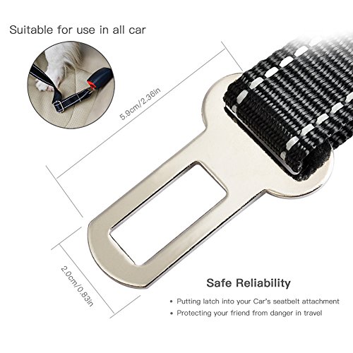 Features Adjustable Lenght: 56-80cm adjustable,allows your dog to sit,lay down or stands freely; Durable Nylon Made:Ensures safety and long time using; No Tangle Hook:360 degree extral large swivel hook preventing from intertwining; Universal Standard Belt Clip: fit almost all kind of vehicle;