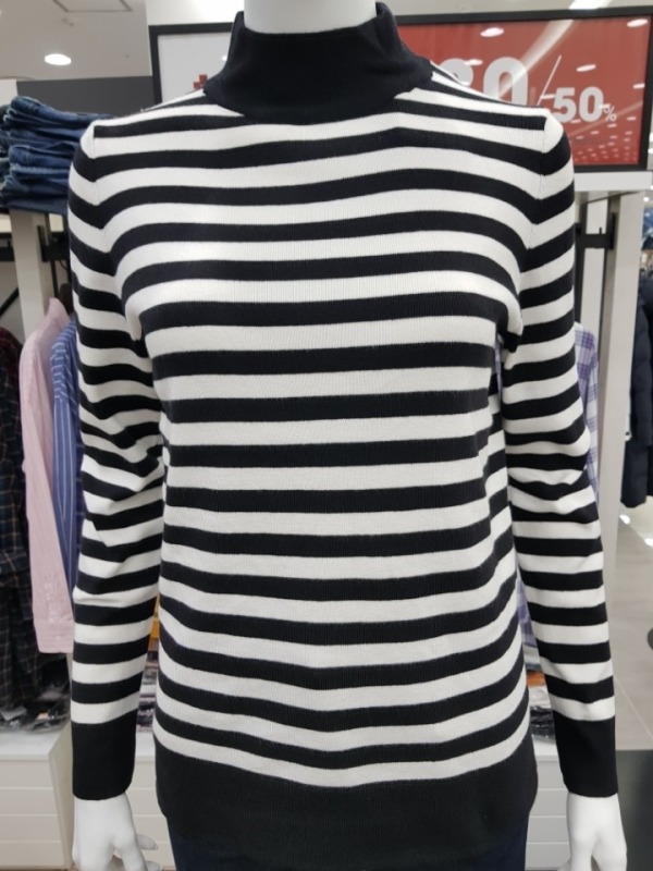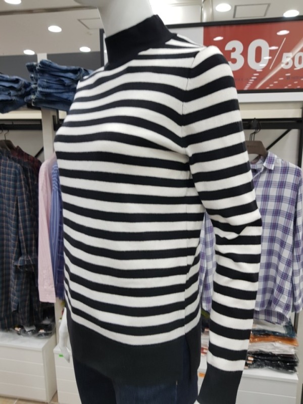 여성 반목 터들넥 니트입니다목선을 적당히 가려주는 니트이며스트라이프로 멋스러움을 더해줍니다