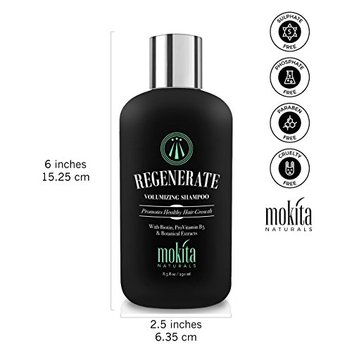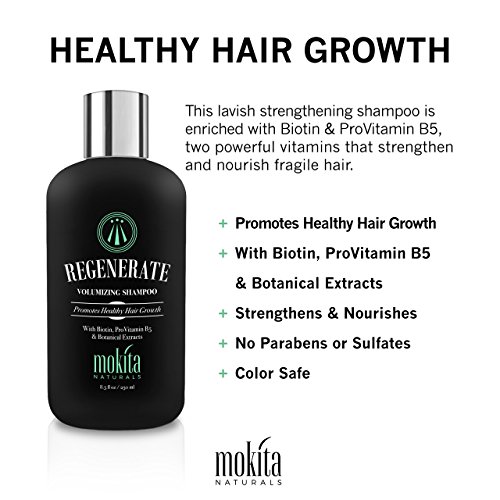 - GET THIS REGROWTH HAIR SHAMPOO RISK FREE: Since your satisfaction is our top priority, Mokita Naturals always stands behind its products. This Biotin strengthening shampoo is backed by our 90 day money back guarantee policy! Order your REGENERATE shampoo bottle today! Suitable for men, women, and those with dyed hair as well.