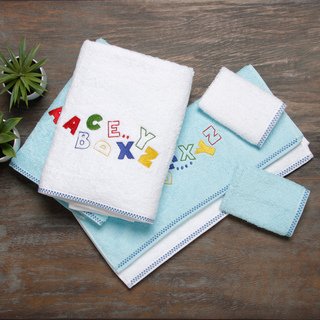 - Title : 6 PC Bath Towels Set Blue and White Between The Ages of 6 and 11 - Salbakos Home Textile Themed ALPHABET