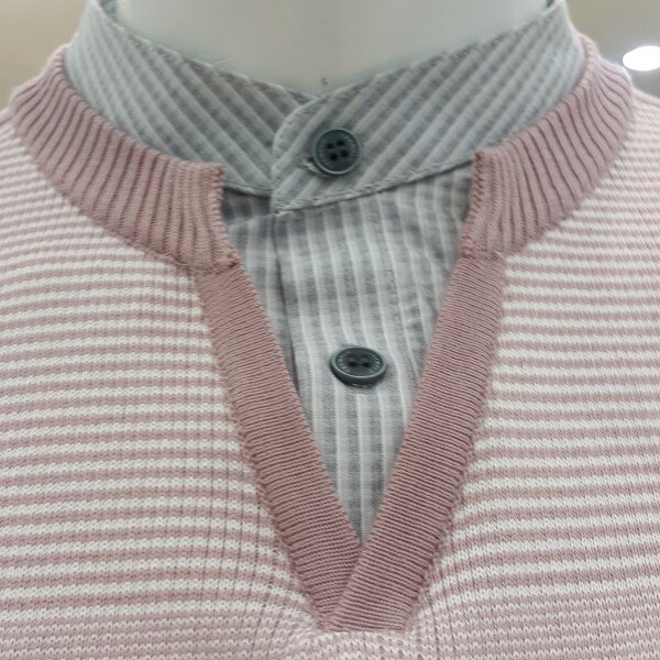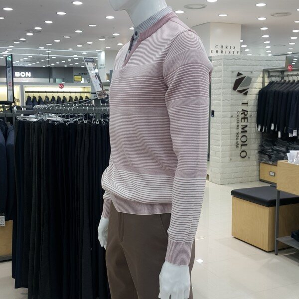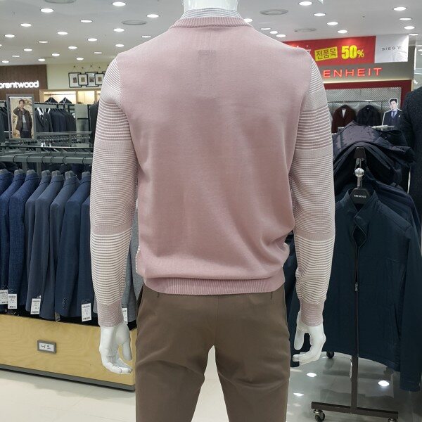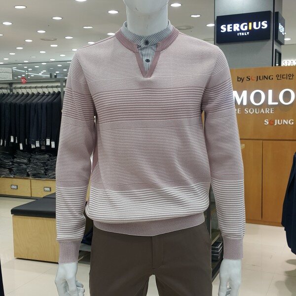 . 톤온톤의 다양한 조직이 믹스된 화사한 컬러감의 남성 스웨터입니다