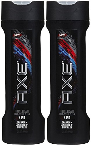 Axe 3-in-1 Shampoo + Conditioner + Bodywash, Total Fresh, 12 Ounce (Pack of 2)