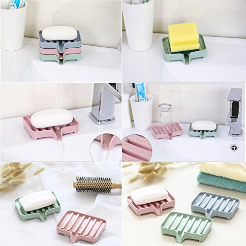 Latom 3-pack Soap Dish with Drain, Soap Tray Soap Saver Soap Box Soap Holder Drainer for Shower/Bathroom/Kitchen/Counter Top, Stop Mushy Soap