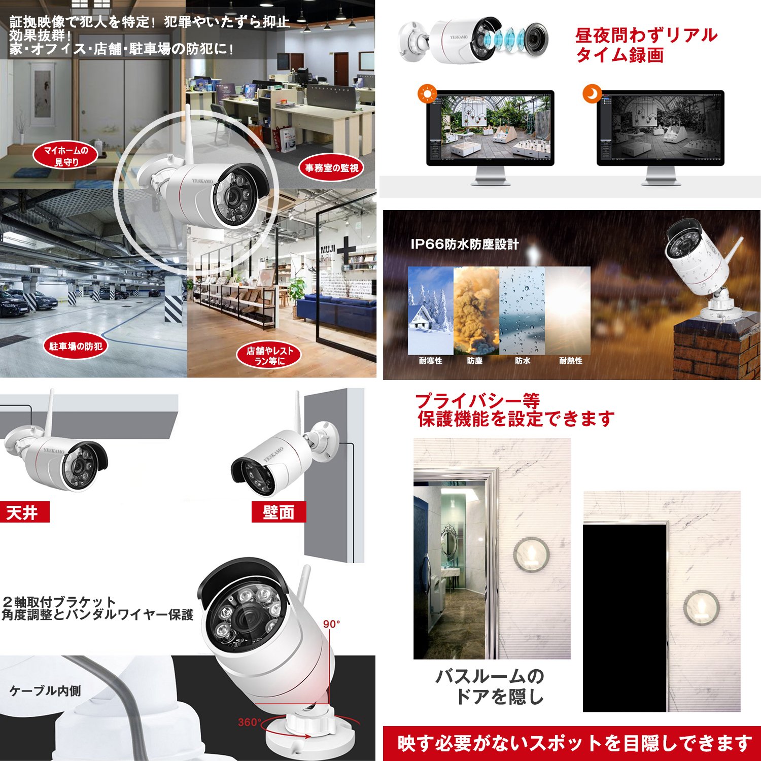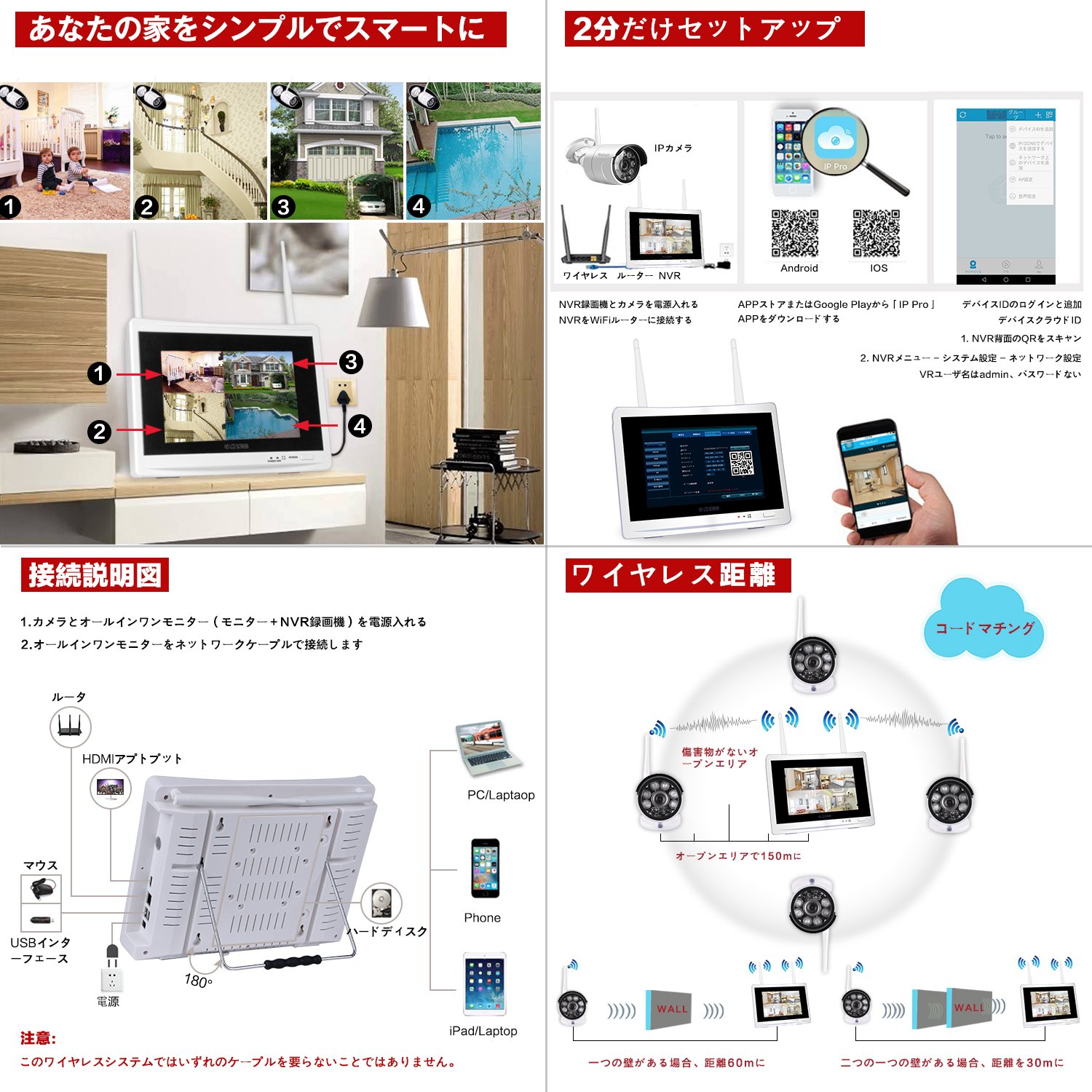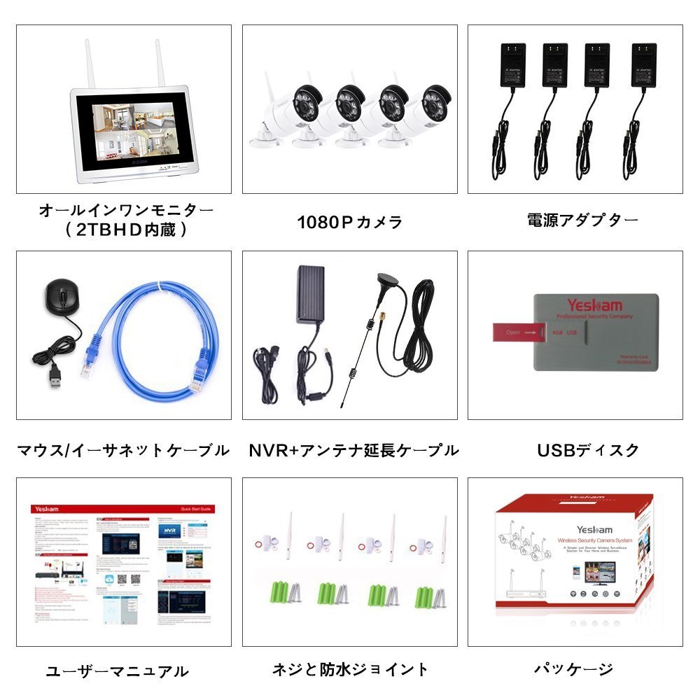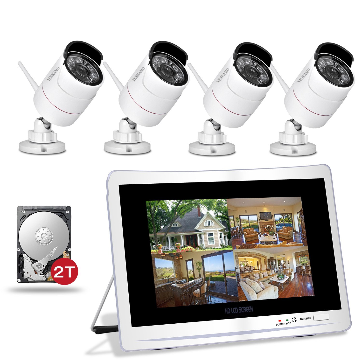 Yeskamo 1080P wireless security cameras are equipped with four monitoring cameras, all-in-one monitors, ideal for home and business.