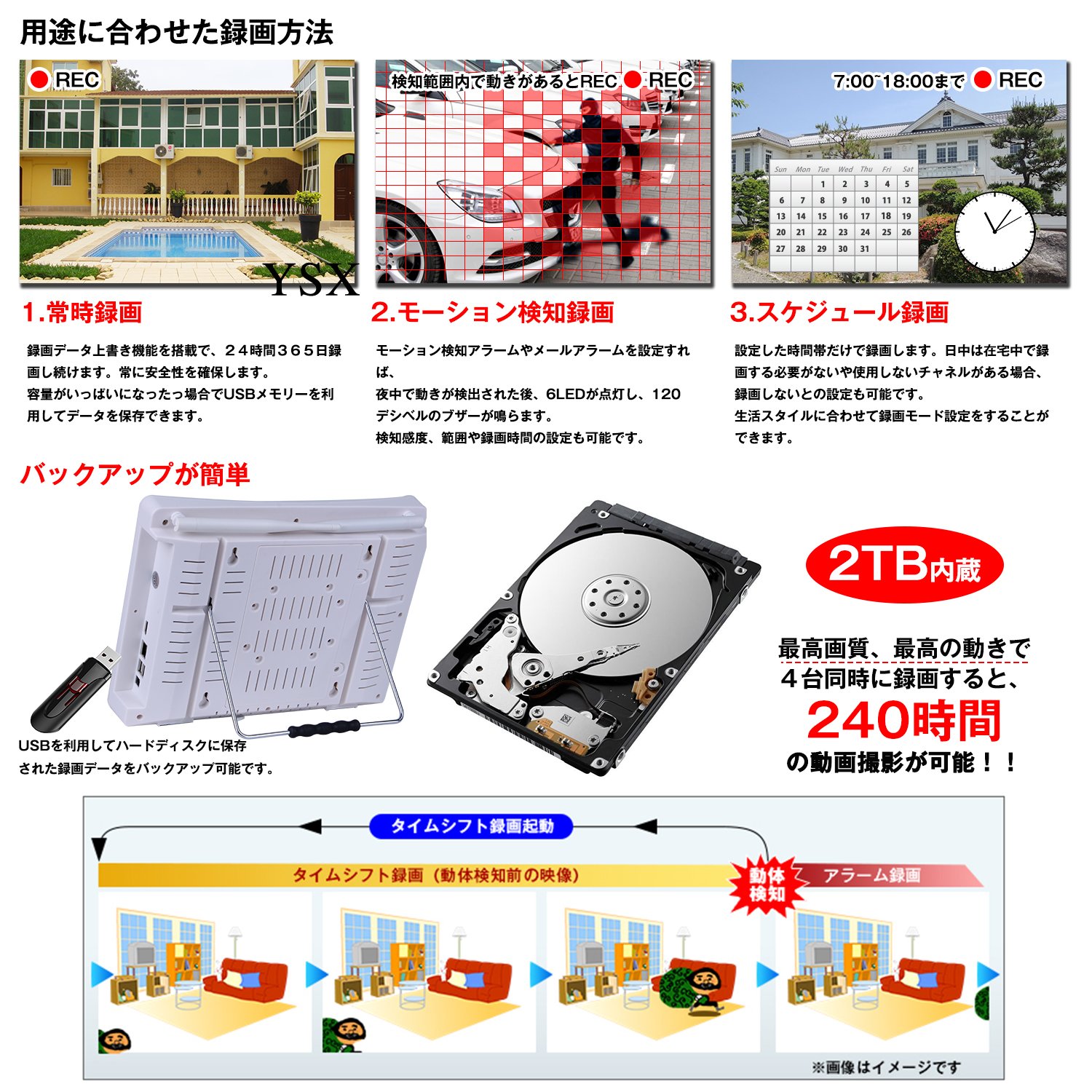 HDD 2 TB built-in, can continuously record 240 hours with 4 CH.