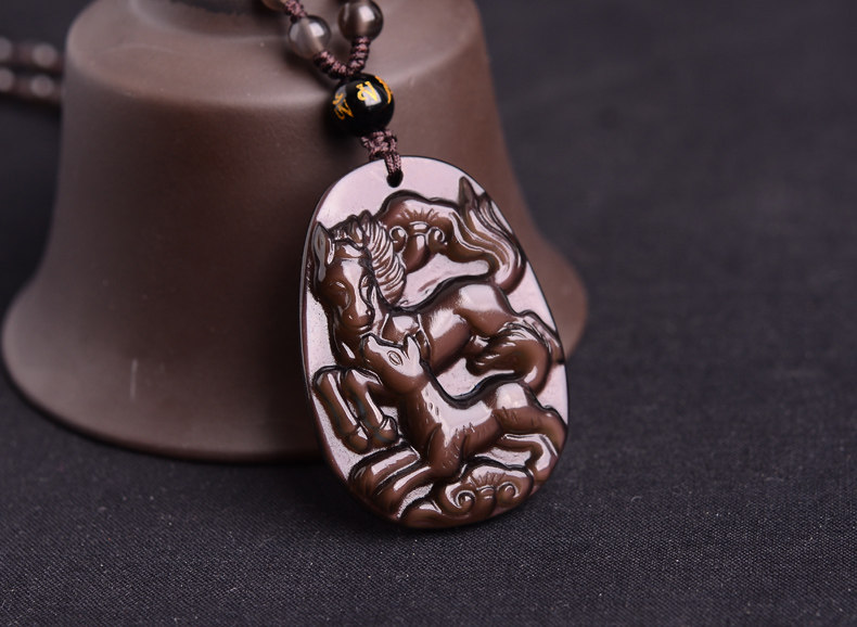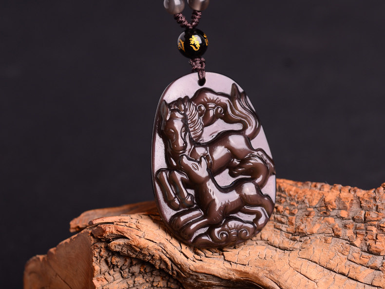 天然冰种黑曜石猴年吉祥物生肖属马 马狗同心 男女吊坠