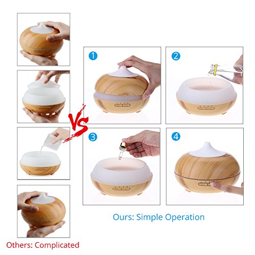 Unique and Compact Design. This aroma diffuser with wood grain looks very natural and primitive. The cap is easy to take off, need't unscrew the cap with great force