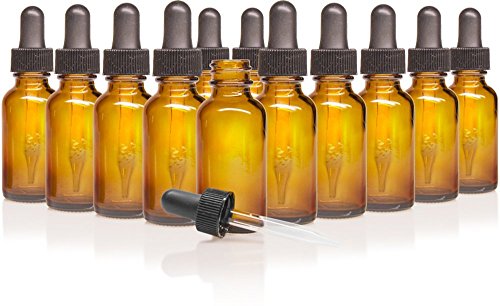 - 12- 1 oz, Amber Glass Bottles, with Glass Droppers, and Black Caps