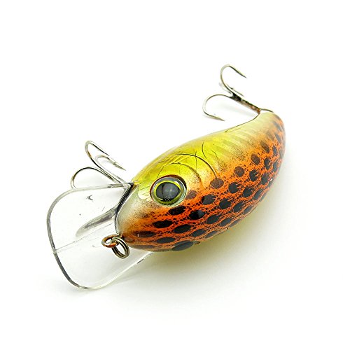 Product Description This crank bait is guaranteed excellent action for suspending.Colors was selected strictly for attracting bass and trout.NSB plated treble hooks and iazer eyes were used.We assure you can catch fish with our superior crank bait. 0