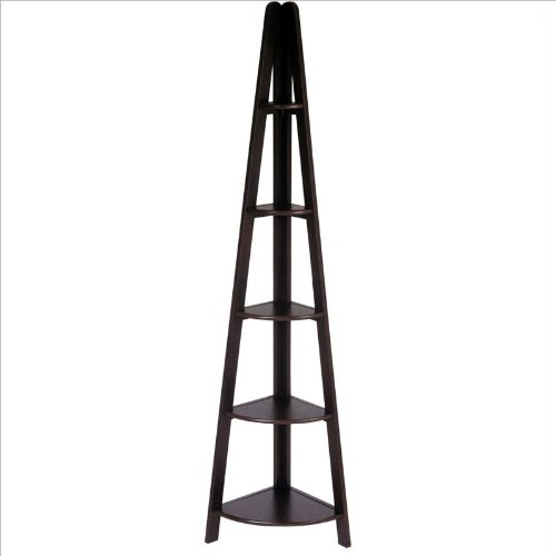 - Feature : Beautiful Espresso finish on select veneers and solids / Five shelves provide storage for books and collectables Distinctive multi-step finish process / Easy to assemble / Attractive design compliments most any dcor / Storage 5 shelves