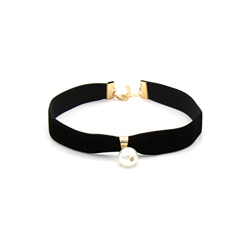 CHOKER DESIGN, MATERIAL, AND SIZE - A black colored velvet choker necklace featuring a cute simulated pearl pendant and extender with lobster clasp closure for easy adjustment. Length: 30+7cm. Width: 1.5cm. Material: soft velvet, simulated pearl, metal alloy. Measurement Tip: Tie a string around your neck at the length you want, then measure the string.