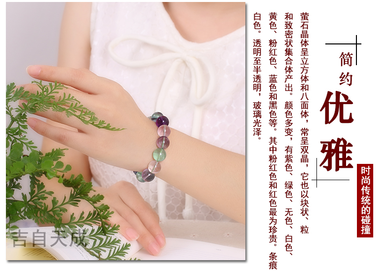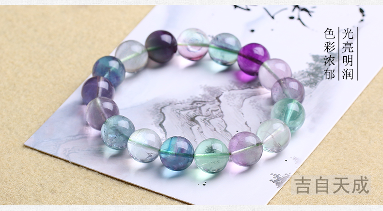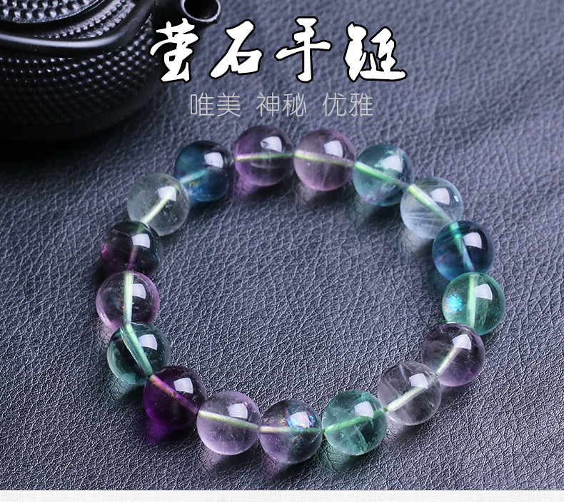开光彩色萤石手链 单圈手串男女 情侣款水晶时尚饰品礼物