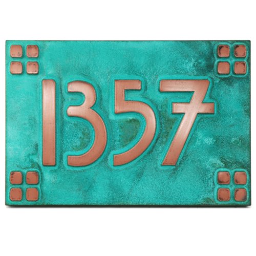 -. Title : Willow Craftsman Address Squares Only 12X8 - Raised Copper Verdi Coated Entry Sign