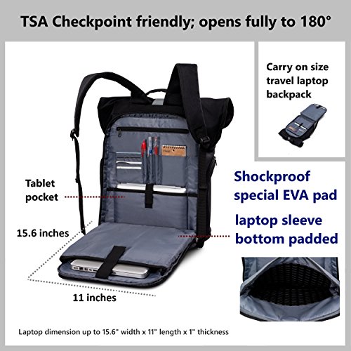 ✔ TSA checkpoint friendly - This tech backpack meets checkpoint requirements that allows you 180 degree fully opened without taking your laptop out of the bag to get through airport security. Enjoy your next big adventure! Rolled dimension: 13(W)x18(H)x7(D)inches. Volume: 40L(Unrolled) / 30L(Rolled down)