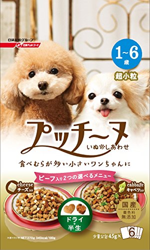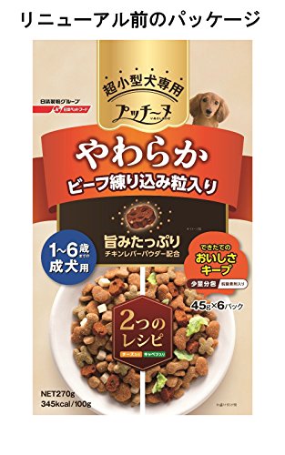 原材料:穀類(小麦粉、ホミニーフィード、とうもろこし、コーングルテンミール、小麦グルテン、脱脂米糠)、肉類(ミートミール、チキンミール、鶏肉、チキンレバーパウダー、牛肉、鶏レバー)、油脂類(動物性油脂、フィッシュオイル、米胚芽油)、大豆ミール、魚介類(フィッシュミール、フィッシュエキス、魚肉抽出物)、ビートパルプ、野菜類(パプリカ、キャベツ、キャベツパウダー、にんじんパウダー、ほうれん草パウダー、かぼちゃパウダー)、アルファルファ、乳類(チーズ、チーズパウダー)、オリゴ糖、ビール酵母、CoQ10、有胞子性乳酸菌、コラーゲン、クロレラ、β‐グルカン、グルコサミン、クローブ、バジル、ローズマリー、ミネラル類(カルシウム、リン、ナトリウム、塩素、銅、亜鉛、ヨウ素)、グリセリン、ビタミン類(A、D、E、B2、B12、パントテン酸、葉酸、コリン)、保存料(ソルビン酸カリウム)、リン酸塩(Na)、酸化防止剤(ビタミンC、ローズマリー抽出物)、発色剤(亜硝酸ナトリウム)