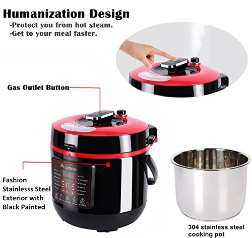 Cook Like a Chef - Enjoy Healthy and Flavorful Eating This versatile pressure cooker is the ideal cookware in kitchen. 18 built-in programs help you to deal with your breakfast, lunch and dinner with ease.With sealed pressure cooking technology, the electric pressure cooker allows to cook food faster but retain moisture, nutrients and vitamins. Treat your family or friends with delicious, flavorful and healthier meals. With the Aobosi Electric Pressure Cooker, cook delicious meals more efficiently, save time, and have peace of mind as well.