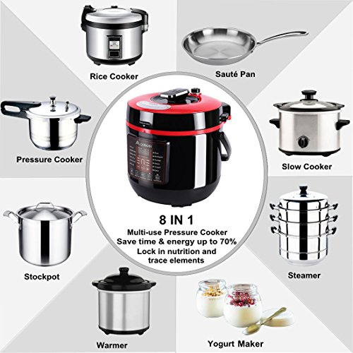 【8-IN-1 ELECTRIC PRESSURE COOKER】Replace your Pressure Cooker, Slow Cooker, Rice Cooker, Steamer,Warmer,Sauté Pan, Stew Cooker & Stockpot. Enjoy one-pot cooking as well as greatly reduce your stress to cleanup multiple pots and pans.