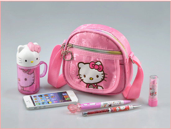 Product Overview: The new three double zipper design, another on a small bag, very Kawai! Kitty pink inner backing also, classic Kay standings cat embroidery patterns, very pretty! Promotions in now ...........