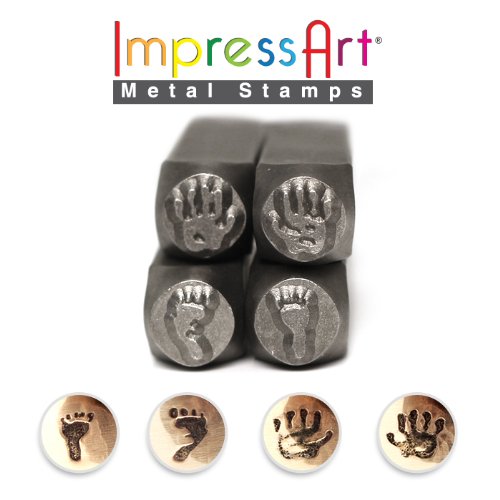 IMPRESS ART-Metal Stamps. Great for jewelry making and mixed media projects. For use with soft metals clay wood leather and other materials. This package contains four 9-1/2mm metal stamps. Design: Hand and Foot Prints. Imported.Feature