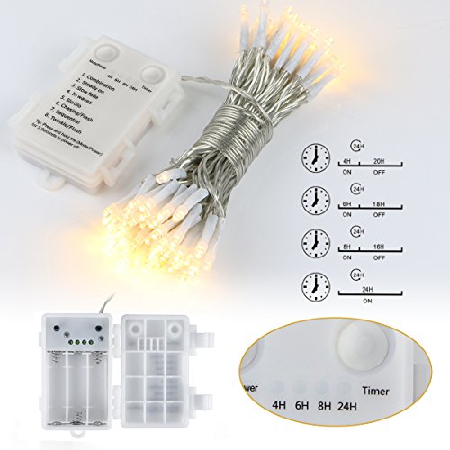 36ft 100 LED Battery Operated LED Lights with Automatic Timer for Outdoor Garden Patio Lawn Partye-(8 Modes, 120 Hours of Lighting, IP65, Waterproof, Warm White)