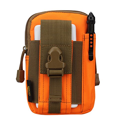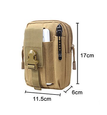 -. Feature : Size:11.5*6*17cm.Multi-purpose utility pouch for hiking/camping/travelling/hunting/bushcraft/daily use. / Material- Made of high quality durable oxford cloth with plastic belt loop clip on waist, touch feeling good. The pouch is water resistant, but it is not waterproof. / It can be attached to a backpack or a belt and therefore fits snugly to your trousers waist.The straps can be threaded through the loops on the back for a tight fit on the belt or any combination of wear options and belt sizes. / Keep your hand tools conveniently on you while you work.Perfect for storing cell phone,power bank,cash,wallet,keychain,digital cameras,passport,credit cards,pen,flashlight,mini notebook,small tools,and everything else you need readily accessible. / Note: products do not include cell phones and pens.