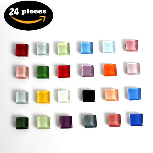 DERYUN 10x10mm Multicolor Square Glass Magnets For Fridge Door Whiteboard Magnetic Map Magnetic Screen Door Bulletin Boards Refrigerators Office Magnets (24pcs)