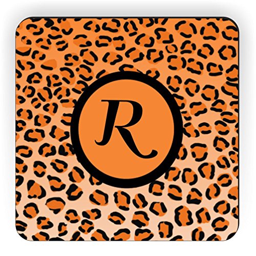 Rikki Knight Letter "R" Initial Orange Leopard Print Monogrammed Design Square Fridge Magnet