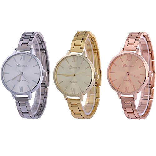 -. Feature : Quartz movement for accurate time keeping / Simple but elegant with a big dial, suitable gifts for your families or friends / Easy matching your every daily style / Band length: 24cm/9.4" Band width: 1cm/0.4" Case diameter: 4cm/1.6" / Package included: 3 x Watches