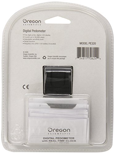 -. Binding : Health and Beauty -. Brand : Oregon Scientific -. Color : Black -. EAN : 0814094942777 -. Feature : Step counter measures 0 to 99,999 steps / Measures 0 to 999.99 miles / Double-line five-digit display / Adjustable motion sensitivity setting / Batteries included: 1 LR43 -. IsAdultProduct : 0 -. IsAutographed : 0 -. IsMemorabilia : 0 -. Label : Oregon Scientific -. LegalDisclaimer : We do not in any way represent that any part we sell is legal to possess in your jurisdiction. Check with you local authorities to ensure it is legal for you to possess before buying! -. Manufacturer : Oregon Scientific -. Model : PE320 -. MPN : PE320 -. NumberOfItems : 1 -. PackageQuantity : 1 -. PartNumber : PE320 -. ProductGroup : Health and Beauty -. ProductTypeName : SPORTING_GOODS -. Publisher : Oregon Scientific -. ReleaseDate : 2010-04-05 -. Studio : Oregon Scientific -. Title : Oregon Scientific PE320 Digital Pedometer with Distance Calculator, Black -. UPC : 734811706249 -. Warranty : 1 Year