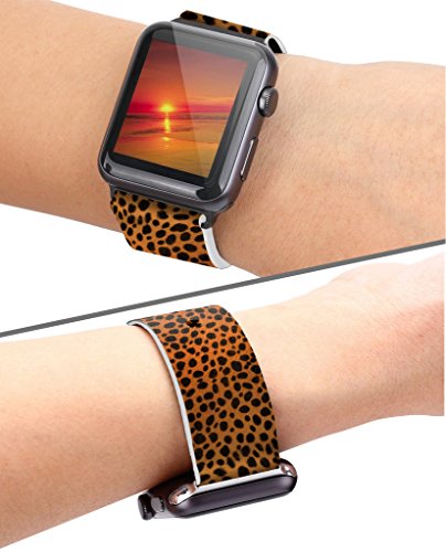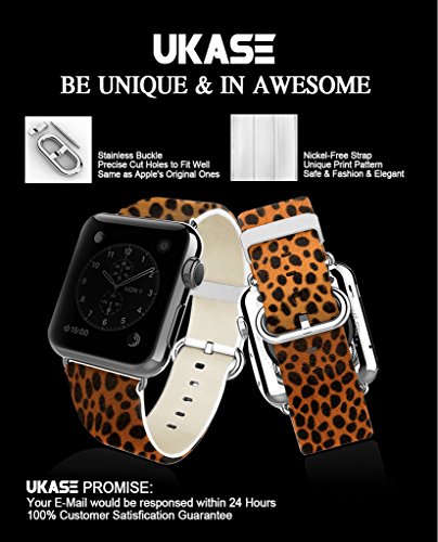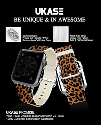 -. Binding : Wireless Phone Accessory -. Brand : UKASE -. Feature : Compatible perfectly for Apple Watch & Sport & Edition version - 42mm; / Premium genuine leather material mixed with fashion, simpleness, durability and elegance / Personalize your iWatch with this refined strap compared to Apple ones, but at least cost / Precise cut holes to fit well for most wrist; limited life time warranty / High quality alternative strap to replace your classic buckle or modern buck strap -. Label : UKASE -. Manufacturer : UKASE -. PackageQuantity : 1 -. ProductGroup : Wireless -. ProductTypeName : WIRELESS_ACCESSORY -. Publisher : UKASE -. Studio : UKASE -. Title : Apple Watch Wristband 42mm, UKASE Printed Leather Strap Band with Black Leopard Pattern