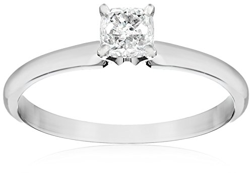 14k White Gold 1/2 Ct Cushion-Cut Solitaire Engagement Ring, Size 6