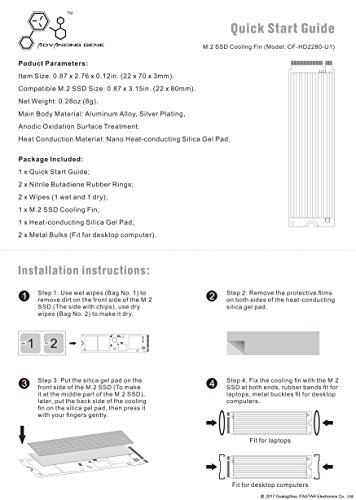 Advancing Gene Anodized Aluminum Heatsinks Cooling Fin with Silicone Thermal Pad for M.2 2280 Internal SSD (Solid State Drive)