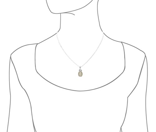 Medium filigree three dimensional pineapple pendant. Body of pineapple is hollow. Sterling silver with 14kt yellow gold plated accents. Pendant measures 3/4 inch (0.75 inch) tall and 7/16 inch (0.44 inch) wide and includes a 16 inch (adjustable to 18 inch) nickel-free sterling silver box chain.