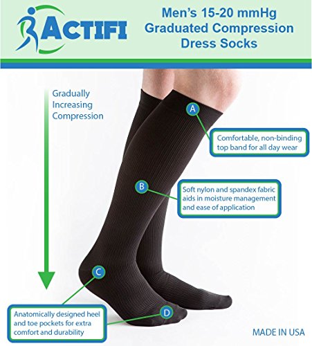 Actifi Men's 15-20 mmHg Compression Closed Toe Dress Socks