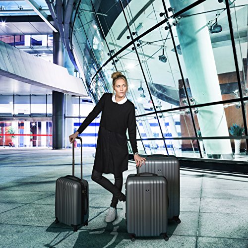 Designed with the traveller in mind, this 3 piece suitcase set features one 28" suitcase and one 24" suitcase for checking in, and one 20" suitcase suitable for carrying onto the plane.