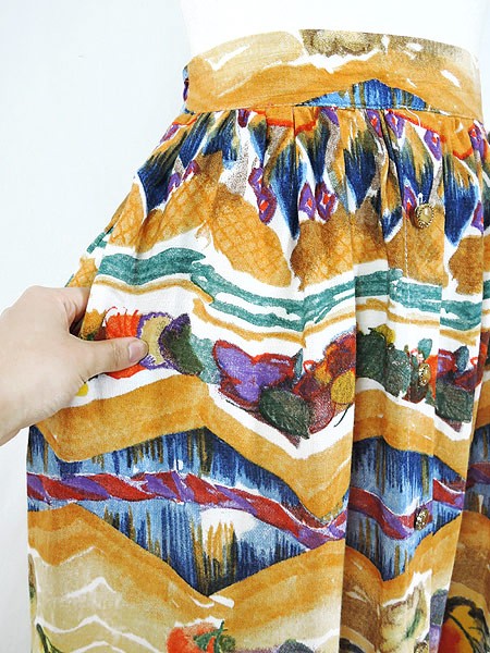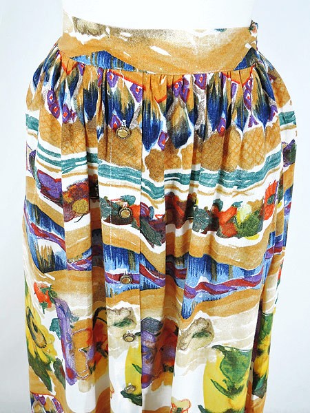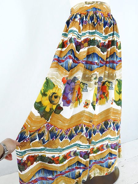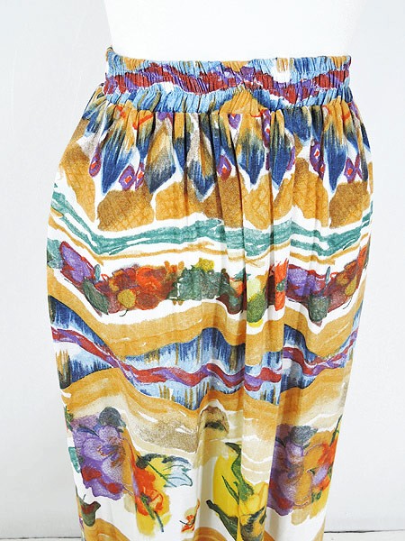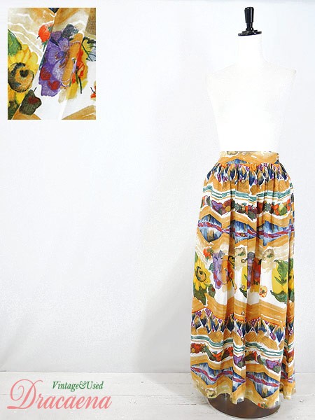 Ladies ブランド カラーベージュ・黄・カラフル メール便不可 コンディション★★★ 素材レーヨン 表記サイズ6 実寸サイズ 着丈 93 cm ウエスト 64cm 〜 76cm (25インチ〜30インチ) ※ウエスト・ヒップ以外は平置き採寸【code】#b