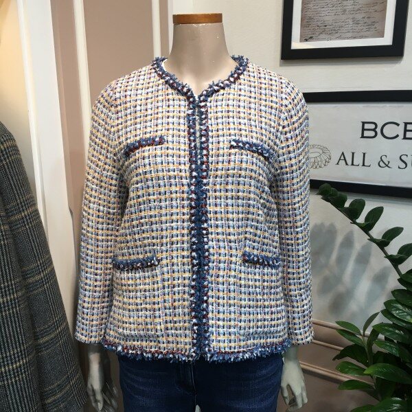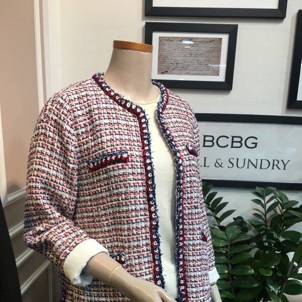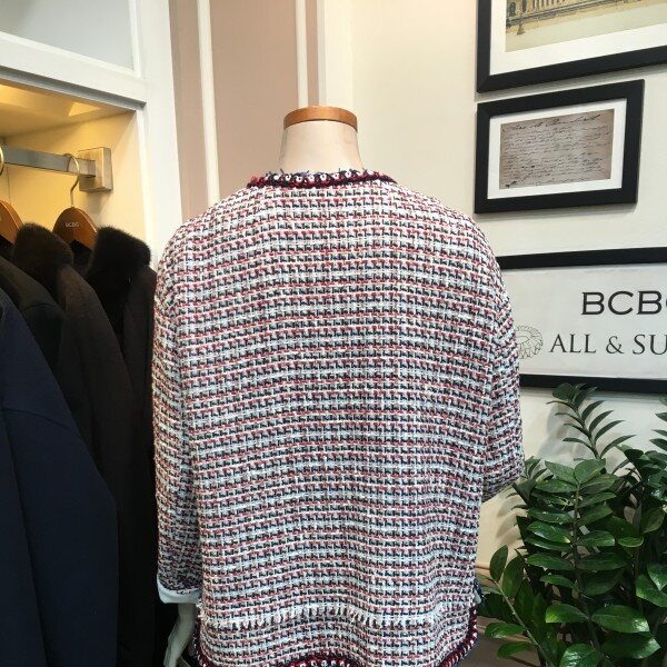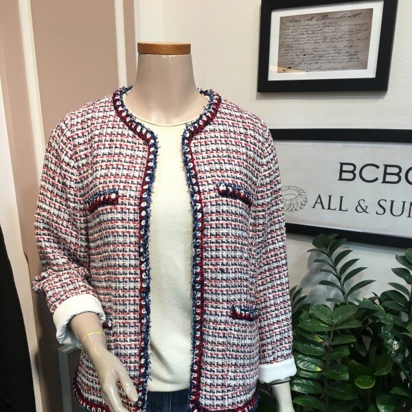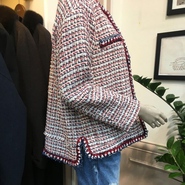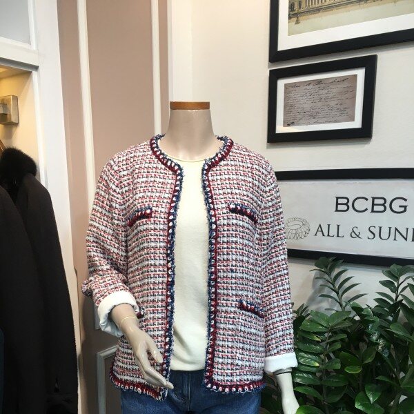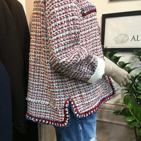 캐쥬얼한 형식의 트위드 자켓입니다 레드색상의 포인트가 청바지와 매치하면 더 멋스러워요