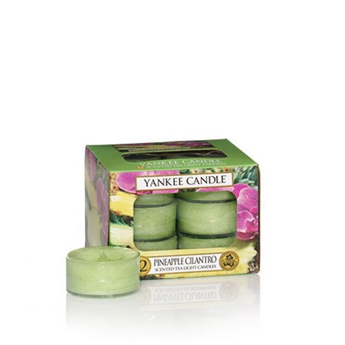 -. Binding : Kitchen -. Brand : Yankee Candle -. EAN : 0609032713232 -. Feature : Box of 12 scented tea lights / Burn Time up to 4-6 Hours each Tea Light / About This Fragrance A tropical treat . . . fresh, island pineapple served with a citrus touch of cilantro and sweet coconut. / About Scented Tea Lights Our scented Tea Lights are perfect for decorating with fragrance. These colorful little candles offer lots of possibilities . . . use multiple tea lights for dramatic style, or alone for a fragrant accent in a small room. -. Label : Yankee Candle -. Manufacturer : Yankee Candle -. Model : 1174270 -. MPN : 1174270 -. PackageQuantity : 12 -. PartNumber : 1174270 -. ProductGroup : Home -. ProductTypeName : HOME_LIGHTING_AND_LAMPS -. Publisher : Yankee Candle -. Size : 0.35 oz tealights -. Studio : Yankee Candle -. Title : Yankee Candle Pineapple Cilantro Tea Light Candles, Fruit Scent -. UPC : 609032713232