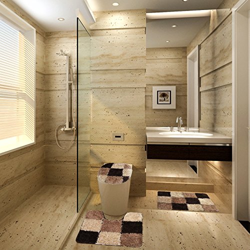 -. Title : Amagical 3 Piece Bathroom Carpet Pedestal Lid Mat Toilet Cover Set Microfiber