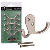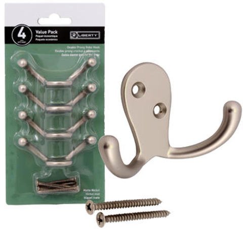 - 4 Liberty Double Prong best Quality hooks great for Robe ,Coat or towels - Matte Nickel
