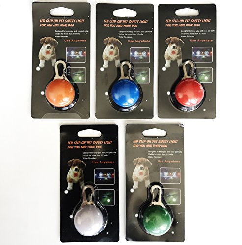 Weather Resistant LED Clip-On Safety Light for Dogs, Cats, Backpacks, Keychains, Camping, Hiking, Biking & More | Multiple Colors Available | Battery Included (Pack of 3 and 5).