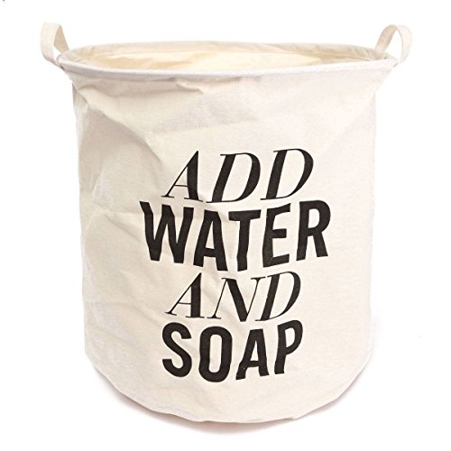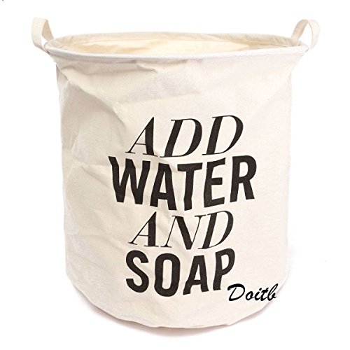 Doitb Foldable Round Laundry Basket Hamper Closet Storage Bag Waterproof Coating Ramie Cotton Fabric Folding Laundry Hamper Storage Basket 4050cm (White letter)